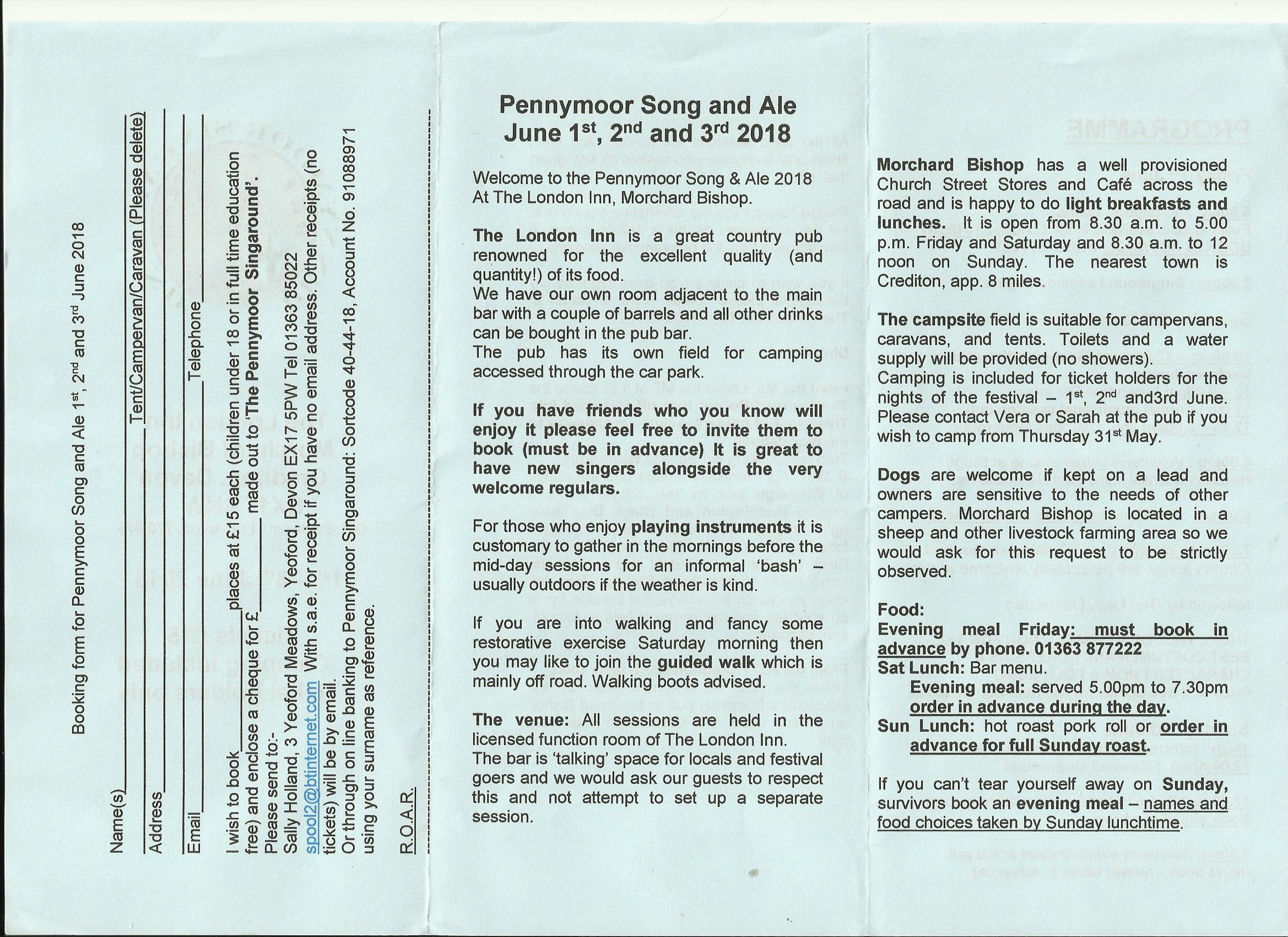 Pennymoor Song & Ale 2018 will be held on 1 - 3 June 2018 at the London Inn, Morchard Bishop. We look forward to seeing the usual suspects and some new faces.